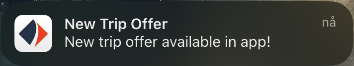 - Når taksameteret mottar en tur vil appen gi et varsel med lyd etter noen sekunder.