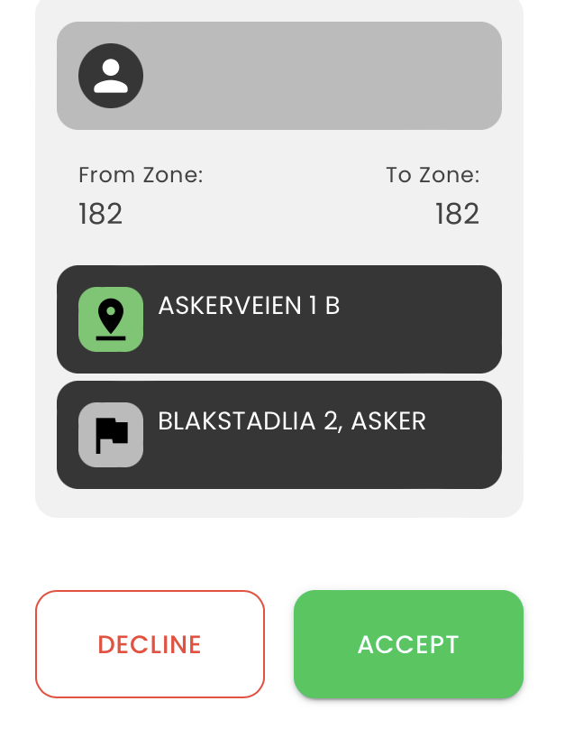 - Aksepter("Accept") eller Avslå("Decline") turen